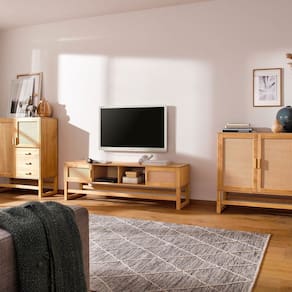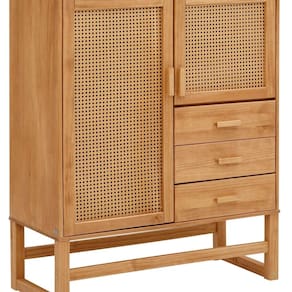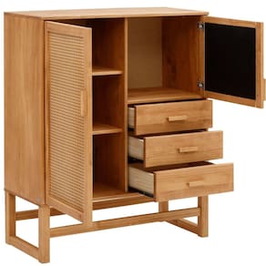 Móvel Com Palhinha Natural Voltou Para Ficar! Este É O Buffet Com Palhinha Indiana Em Cera Com Toque Acetinado Natural Da Madeira Maciça, Com 2 Portas E 3 Gavetas Ideal Para Reavivar O Desgin Retro / Coleção Acapulco
