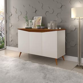 Que tal um móvel que vá deixar seu cantinho mais elegante e sofisticado o Aparador Buffet Encanto 3 portas. Foi desenvolvida pensando para ter praticidade com 3 portas com dobradiças metálicas, amplo espaço e uma prateleira interna. Possui tampo para acomodar, bebidas, taças ou decorações fabricadas em MDP de 15 mm e tampo em MDF de 15 mm, com pés em madeira maciça (20 cm) no Estilo Retrô, dando charme e durabilidade ao produto. Além disso o design com curvas torna o móvel harmonioso e deixa o cômodo mega maravilhoso.