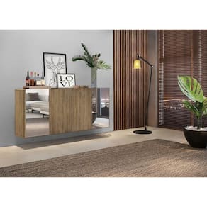 O Aparador Buffet com Espelho Suspenso Vegas Multimóveis é produzido em MDP com acabamento acetinado (cerca de 20% de brilho), que garante maior durabilidade, facilidade na limpeza, além de um acabamento superior. Com 4 portas, possui um excelente espaço interno para organizar seus pertences (as prateleiras internas suportam 5 Kg cada e o tampo 10 Kg) e ainda acompanha kit para ser montado de forma suspensa, conforme a altura que você quiser do chão. Os detalhes com espelhos nas portas deixam o móvel mais requintado, criando um ambiente moderno e charmoso. Os espelhos são de vidro (o que evita que a imagem fique distorcida) e lapidados, ou seja, passam por um processo para que as bordas não fiquem cortantes, o que garante maior segurança. Seu design minimalista, torna o móvel muito versátil, podendo ser utilizado de diversas maneiras e em qualquer ambiente.
