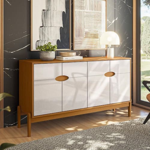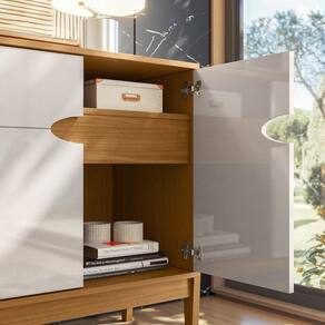 Para ambientes como sala de jantar e sala de estar, o Buffet Intense Movelove é o móvel perfeito, com cantos arredondados e pés de madeira