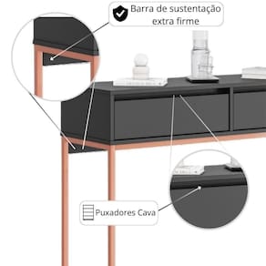 Feito em MDP com acabamento bordas em ABS. Estrutura em aço com pintura EPOXI nas cores preto.