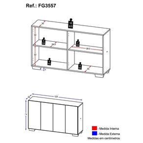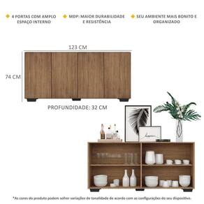 Dimensões do produto montado: Altura: 74cm | Largura: 123cm | Profundidade: 32cm *Você pode consultar as medidas internas na imagem técnica do produto.