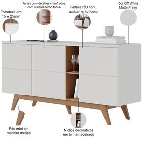Já pensou em ter um buffet com design moderno? O Aparador Buffet Para Sala de Jantar 03 Portas Íris C04 Off White Matte Freijó - Lyam é exatamente o que você está procurando! Indicado para uso em salas de estar ou jantar, este buffet se resume á praticidade! Possui três portas com detalhes chanfrados e com prateleiras internas, para melhor organização no buffet sem deixar de contribuir com muito charme e uma riqueza para seu ambiente! Ideal para guardar seus jogos de jantar, travessas, copos e taças. O tampo contribui trazendo espaço e flexibilidade para ser apoio de objetos decorativos e também como um mini bar, expondo de suas bebidas prediletas! Leve agora o seu!