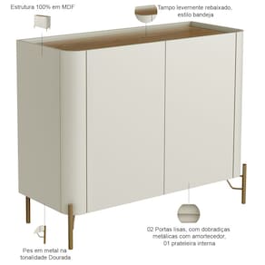 Fabricado em 100% MDF, esse buffet combina portas lisas e um design curvo - características do estilo orgânico - com pés metálicos industriais, criando um visual único e cheio de personalidade. Já com o tampo levemente rebaixado no estilo bandeja, esse aparador elegante oferece um espaço prático para exibir objetos decorativos ou servir drinks em encontros especiais. Por fim, seu amplo espaço interno garante organização sem comprometer a elegância, perfeito para guardar louças, toalhas ou itens de decoração.