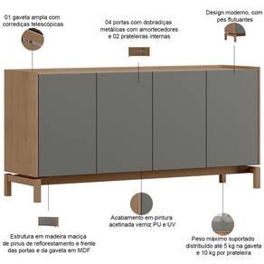 Aparador Buffet Para Sala De Jantar 4 Portas 165cm Esdras F06 Oak Ferrolack - Lyam Decor