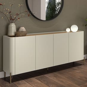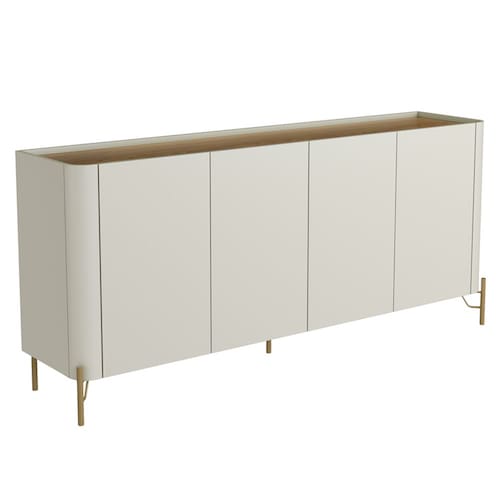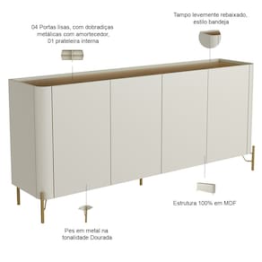 Fabricado em 100% MDF, esse buffet combina portas lisas e um design curvo - características do estilo orgânico - com pés metálicos industriais, criando um visual único e cheio de personalidade. Já com o tampo levemente rebaixado no estilo bandeja, esse aparador elegante oferece um espaço prático para exibir objetos decorativos ou servir drinks em encontros especiais. Por fim, seu amplo espaço interno garante organização sem comprometer a elegância, perfeito para guardar louças, toalhas ou itens de decoração.