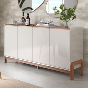 Amplo Espaço: As 4 portas oferecem excelente capacidade para armazenar utensílios de jantar, toalhas e objetos decorativos.