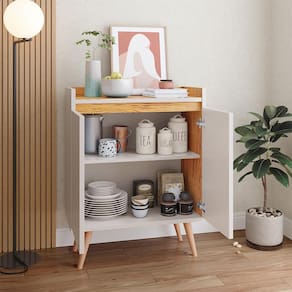 Aparador Buffet Retrô 2 Portas Barthô é ideal para sua sala! Com designer retrô ele irá agregar muito mais charme e requinte ao seu ambiente. Possui duas portas com dobradiças metálicas e amplo nicho interno. Uma prateleira com amplo tampo para acomodar bebidas, objetos de decoração, taças etc. Elaborado em MDP, atributo que garante ao produto maior resistência e durabilidade.