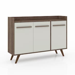 Decore seu ambiente com elegância e praticidade com o Aparador RT3134! Produzido em MDP 15mm e MDF 3mm de alta qualidade, ele oferece resistência e durabilidade para o seu dia a dia. O acabamento em UV na cor Off White garante um visual moderno e sofisticado que combina com diversos estilos de decoração. Com 3 portas e 2 prateleiras internas, o Aparador oferece amplo espaço para organizar seus pertences, seja na sala de estar, no quarto, no escritório ou em qualquer outro ambiente da sua casa. CARACTERÍSTICAS TÉCNICAS DO APARADOR BUFFET RETRÔ: - Produzido em MDP 15mm e MDF 3 mm; - Acabamento em UV na Cor Off White; - Dobradiças Metálicas; - Possui 3 Portas e 2 Prateleiras Internas. DIMENSÕES DO APARADOR BUFFET RETRÔ: Altura: 95 CmLargura: 136 CmProfundidade: 36,5 CmPeso: 33,5 Kg INFORMAÇÕES ADICIONAIS: - ATENÇÃO: Não trabalhamos e não nos responsabilizamos pela montagem do móvel. Antes da montagem conferir se o produto está de acordo com o que comprou, produto montado e danificado pela montagem não será aceito troca. Montagem e instalação por conta do comprador.- As imagens ambientadas são meramente ilustrativas e podem apresentar itens que não compõe o produto. As cores do produto podem variar de acordo com o monitor, a iluminação do ambiente ou sua percepção visual.- Limpeza: Deve ser feita com pano macio e seco ou levemente umedecido com água e sabão neutro. Não devem ser utilizados abrasivos como palha de aço e objetos cortantes.Garantia para defeitos de fabricação conforme Código de Defesa do Consumidor.