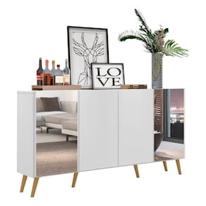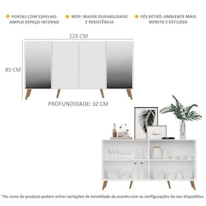 O Aparador Buffet com Espelho e Pés Retrô Vegas Multimóveis é produzido em MDP, que garante maior durabilidade, facilidade na limpeza, além de um acabamento superior. Com 4 portas, possui acabamento