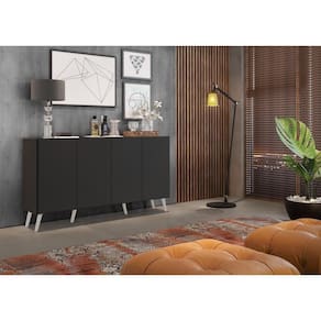 O Aparador Buffet 4 portas com Pés Retrô Veneza Multimóveis é produzido em MDP com acabamento acetinado (cerca de 20% de brilho), que garante maior durabilidade, facilidade na limpeza, além de um acabamento superior. Com 4 por