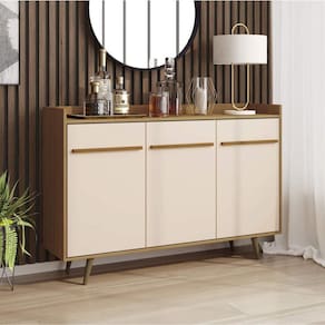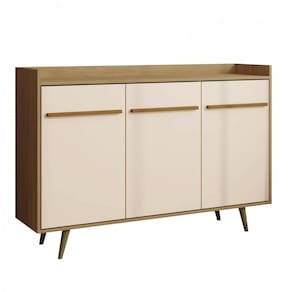 O Aparador Buffet Quartzo é ideal para sua sala! Com designer retrô ele irá agregar muito mais charme e requinte ao seu ambiente. Possui três portas com dobradiças metálicas, e amplo nicho interno. Duas prateleiras, sendo uma delas a altura ajustável ou até mesmo removível. Amplo tampo para acomodar bebidas, objetos de decoração, taças etc. Elaborado em MDP com pés em madeira maciça, esses atributos garantem ao produto maior resistência e durabilidade. Acabamento: Pintura UV Acabamento da Porta: Pintura UV Acabamento da Prateleira: Pintura Texturizada UV Acabamento dos Pés: Verniz Altura: 97 cm Altura dos Pés: 15 cm Complexidade da Montagem: Baixa: pode ser montado por uma pessoa sozinha Cr do Produto: Cinamomo/Off-White Cr Flex: Não Cr Interna: Cinamomo Escala de Brilho: Semi-Brilho Escala de Brilho da Porta: Semi-Brilho Escala de Brilho da Prateleira: Semi-Brilho Informações Complementares: Produto elaborado em MDP de 15mm. Possui uma prateleira com altura ajustável. Acabamento de superfície por pintura/impressão com verniz UV em padrões Premium semi-brilhantes, com textura em alto-relevo, ou em padrões lisos. Pés de madeira maciça (pinus). Itens Inclusos: 1 Aparador Buffet Quartzo e 1 Manual de Montagem Largura: 135 cm Linha ou Coleção: Decor Manual de Montagem e Instalação: https://cdn2.madeiramadeira.com.br/atributo/moveis-bechara/484913-manual-de-montagem-aparador-buffet-quartzo.pdf Material da Porta: MDP Material da Prateleira: MDP Material do Puxador da Porta: MDF Material dos Pés: Madeira Maciça Material Principal: MDP Montagem Flex: Não Necessita Montagem: Sim Pés Reguláveis: Não Peso: 36,2 kg Peso Máximo por Prateleira: 5 kg Possui Gavetas: Não Possui Pés: 04 Possui Portas: 03 Possui Prateleiras: 02 Possui Rodízio: Não Profundidade: 37 cm Recomendações de Uso, Manutenção e Limpeza: Recomenda-se limpar o produto com flanela ou pano macio seco, não utilizar produtos abrasivos, desengordurantes, álcool ou solvente. Mantê-lo em lugar livre de umidade e/ou exposição direta ao sol. Sapatas Niveladoras: Não Sistema de Montagem: Parafusos, minifix, girofix, pregos, cavilhas e cola. Suporta Até (kg): 32 kg Tipo de Dobradiça/Corrediça da Porta: Metálica Tipo de Madeira Maciça dos Pés: Pinus Tipo de Porta: Bater Tipo de Puxador da Porta: Externo