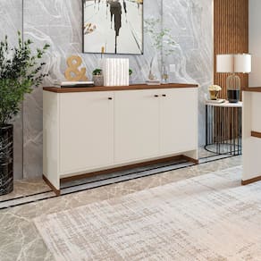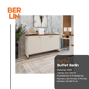 Aparador ou Buffet? Você que escolhe qual a melhor maneira para usar nosso Berlim, desenvolvido com exclusividade pela ViaNossa com a mais alta qualidade, com a estrutura em material MDP, pintura UV e tampo em 25 mm, conta com 3 prateleiras internas com excelente espaço para organização, 3 portas articuladas com dobradiças metálicas, puxadores em ABS e pés ripados em MDP com sapatas plásticas.