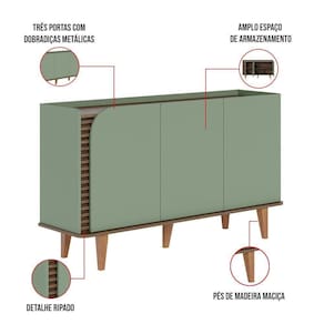O Buffet Ewa de 136 cm é a síntese do requinte e da funcionalidade, projetado para transformar seu espaço com um toque de sofisticação. Sua estrutura em MDP, MDF e HDF combina resistência e beleza, enquanto a pintura UV em tom Verde Pistache/Amêndoa confere um acabamento impecável, adicionando charme ao ambiente. Com três portas equipadas com dobradiças metálicas, este buffet oferece amplo espaço de armazenamento para organizar seus pertences com praticidade. O detalhe ripado e a base com cantos curvos ressaltam o design elegante, enquanto a lateral com canto curvo adiciona um toque de delicadeza. O tampo estilo bandeja proporciona uma superfície refinada para exibir decorações ou servir alimentos, enquanto o interior conta com prateleiras para uma organização ainda mais eficiente. Os pés de madeira maciça conferem estabilidade e robustez à peça, complementando sua estética sofisticada. Seja na sala de jantar, na sala de estar ou em qualquer outro ambiente, o Buffet Ewa é a escolha ideal para quem busca estilo e funcionalidade em um móvel único e encantador. Adicione um toque de elegância à sua casa com este deslumbrante buffet.