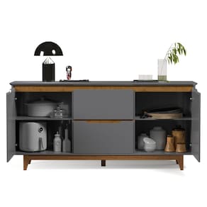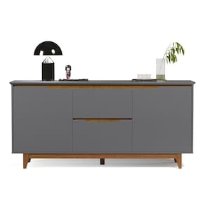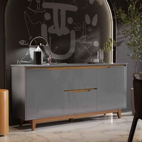 Aparador Buffet Sala Flow 2 Portas 2 Gavetas com Pés de Madeira Cinza com Freijó - Rede Móveis