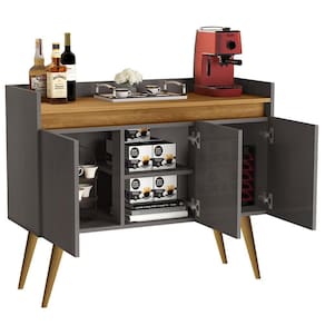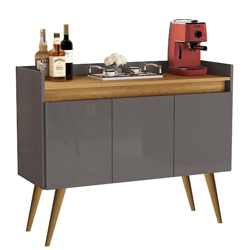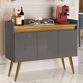 Aparador Buffet Sala Gold 3 Portas com Pés de Madeira Maciça - Cinza