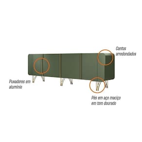 Fabricante: HB Móveis | Marca: HB Móveis | Altura: 75 cm | Largura: 220 cm | Comprimento: 45 cm | Profundidade: 45 cm | Altura Embalado: 16,6 | Largura Embalado: 56,3 | Comprimento Embalado: 210 | Peso: 59,57 kg | Peso Embalado: 59,57 | Material: MDP/MDF de 15 mm, pés de aço | Estado de Origem: SP | Descrição do Tamanho: 75 x 220 x 45 cm | Modelo: Aparador Buffet Saluti com Pés de Aço | Garantia em Meses: 03 meses de garantia para defeitos de fabricação | Tonalidade: Multicolorido | Linha: Salas | Quantidade de gavetas: 0 | Quantidade de prateleiras: 2 | Requer montagem: Sim | NcmCode/NBM: 94036000 | Precisa de baterias ou pilhas (areBatteriesRequired): Não | Regulamentações aplicáveis a produtos perigosos (supplierDeclaredDGHZRegulation): Não se aplica | É kit: Não | Com alça: Sim | Peso máximo suportado: 30 kg | Acabamento: Pintura | Quantidade de portas: 4 | Estilo: Moderno | Com corrediças: Não | Quantidade de caixas de embalagem: 2 | Código da Homologação ANATEL: Não se aplica | Código MAPA (32485): Não se aplica | Código INMETRO (32486): Não se aplica | Código ANVISA (32481): Não se aplica Cor: Verde Pistache