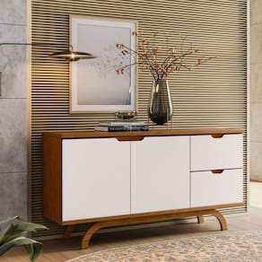 Este Aparador Buffet da linha Vicenza é uma peça refinada, projetada para adicionar elegância e funcionalidade ao seu ambiente. Fabricado em MDF de alta qualidade, possui um design robusto e contemporâneo elevando a beleza de seu ambiente e deixando mais convidativo. Possui duas gavetas espaçosas e duas portas que se abrem suavemente, proporcionando amplo espaço para organização de utensílios de cozinha. Seus pés desenvolvidos em MDF, garantindo estabilidade e um toque sofisticado. As dobradiças metálicas garantem um fechamento suave e seguro das portas. Deixe seu espaço ainda mais lindo, adquira já o seu!