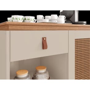 O Aparador Café Rubi chegou para proporcionar ao consumidor! Flexibilidade no uso, ele permite ser utilizado para dividir ambientes. Inovador e com design vintage, ele chegou proporcionando qualidade para o consumidor, cheio de estilo, compacto e com design moderno, ele facilitará sua organização embelezando ainda mais sua espaço! Porta moldurada com pintura 3D palhinha, e com sistema de abertura por toque (push-open). Contém 1 Gaveta com amplo espaço com corrediças telescópicas e puxador de alça de revestimento sintético. Pés em madeira maciça com feltro, acabamento requintado.