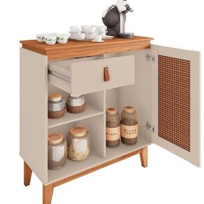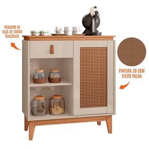 Quantidade de portas: 01, pintura 3D com efeito palha, sistema push-open (fecho-toque);