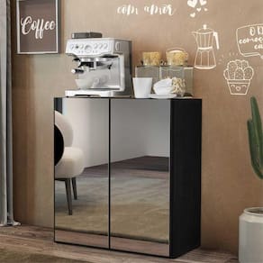 O Aparador Cantinho do Café com Espelho 2 Portas Multimóveis é produzido em MDP com acabamento acetinado (cerca de 20% de brilho), que garante maior durabilidade, facilidade na limpeza, além de um acabamento superior. Com 2 portas, possui um excelente espaço interno para organizar louças, bebidas e demais objetos (a prateleira interna suporta 8 Kg e o tampo 9 Kg). Os detalhes com espelhos nas portas deixam o móvel mais requintado, criando um ambiente moderno e charmoso. Os espelhos são de vidro (o que evita que a imagem fique distorcida) e lapidados, ou seja, passam por um processo para que as bordas não fiquem cortantes, o que garante maior segurança. Os amantes de café poderão deixar seu cantinho mais prático e aconchegante para curtir os melhores momentos com os amigos e família, saboreando um delicioso cafezinho.