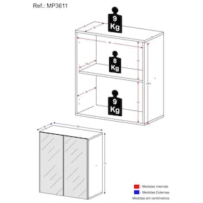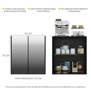 Dimensões do produto montado: Altura: 70cm | Largura: 63cm | Profundidade: 32cm *Você pode consultar as medidas internas na imagem técnica do produto.