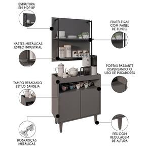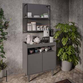 Com o Aparador Cantinho do Café e Painel 2 Prateleiras Flora Z34 Grafite, da Mpozenato, estilo e funcionalidade se encontram para deixar o seu ambiente acolhedor e cheio de personalidade.