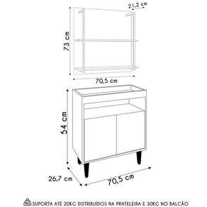 Peso Suportado: 20 kg distribuídos na Prateleira, 30 kg distribuídos no Balcão.