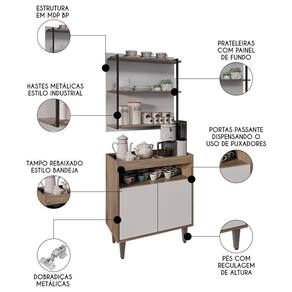 Remetendo ao estilo industrial, essa prateleira com painel é sinônimo de resistência e durabilidade, ao passo que o design moderno torna o uso versátil, já que podem ser aproveitada não somente como complemento na cozinha, mas também como prateleira decorativa em diversos ambientes. Além disso, quando combinada com o aparador, a funcionalidade é otimizada. Isso porque esse balcão tem muitas faces, podendo ser adequado como apoio para louças na cozinha, como buffet compacto na sala de jantar ou até mesmo como balcão cantinho do café na sala de estar ou escritório; afinal, proporciona não somente armazenamento prático e organizado, como também toque de aconchego ao ambiente, seja ele qual for.
