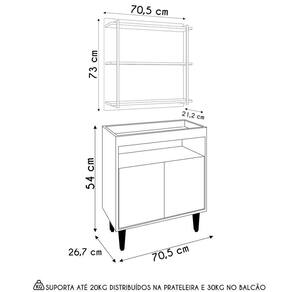 Peso Suportado: 20 kg distribuídos na Prateleira, 30 kg distribuídos no Balcão.