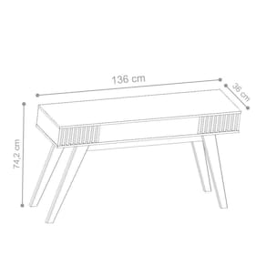O móvel possui uma gaveta multiuso, pés em madeira maciça, ripas decorativas em suas laterais, além de um tampo espaçoso que pode ser para decorações, possibilitando a disposição de taças, bebidas e demais objetos.