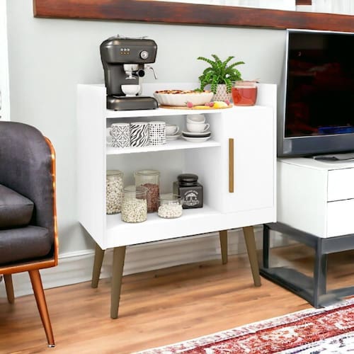 O aparador com nichos é uma peça versátil e funcional que pode ser usada em diversos ambientes da casa. Ele é perfeito para organizar objetos decorativos, como livros, quadros ou suas bebidas! Perfeito para as pausas para o cafézinho.