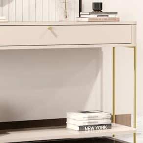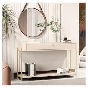 MDF, MetalO aparador tucupí tem os cantos arredondados exclusivos da linha, base e tampo em MDF de 15mm, gaveta em MDF de 15mm com corrediças telescópicas além dos pés e puxadores em metal com design exclusivo.