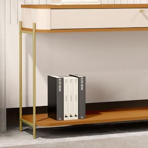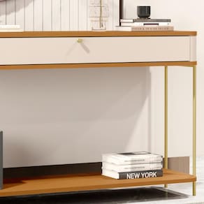 O aparador tucupí tem os cantos arredondados exclusivos da linha, base e tampo em MDF de 15mm, gaveta em MDF de 15mm com corrediças telescópicas além dos pés e puxadores em metal com design exclusivo.