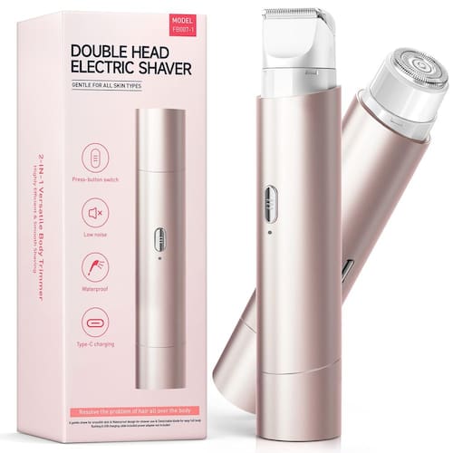 - Design de cabeça dupla: o aparador de biquíni para mulheres apresenta um design inovador de cabeça dupla que permite uma depilação precisa no rosto, corpo e área do biquíni sem a necessidade de substituições frequentes da cabeça. Perfeito para obter uma pele macia sem esforço com um dispositivo versátil.