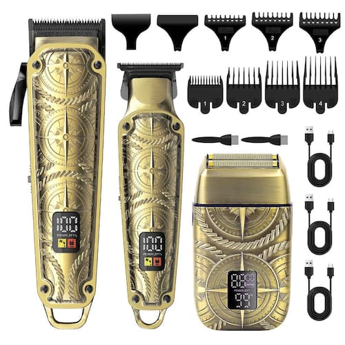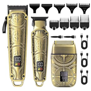 - Conjunto de aparador de cabelo 3 em 1: este conjunto de aparador de cabelo inclui um aparador de cabelo com lâmina ajustável está equipado com 4 pentes guia (3 mm/6 mm/10 mm/13 mm) para diferentes comprimentos de cabelo, um aparador de cabelo para aparar barba e cabelo equipado com 3 pentes guia (1,5 mm/3 mm/4,5 mm) e um barbeador. Com este conjunto de aparador de cabelo, você será capaz de resolver a maioria dos penteados masculinos. necessidades de alojamento! Este é um ótimo kit de cuidados para uso doméstico e para barbearia.