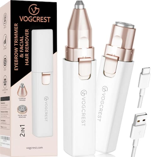 EXCEPCIONALMENTE PRECISO E EFICIENTE: Diga adeus aos inchaços e irritação causados pelos métodos tradicionais de remoção de pelos. Esta ferramenta de remoção de pelos faciais é altamente precisa e segura para mulheres com pele sensível. Remove o cabelo de forma eficaz e precisa, sem causar qualquer dor ou desconforto. Fácil de usar e suave: o aparador de sobrancelhas 2 em 1 VOGCREST e o barbeador facial oferecem uma experiência suave e confortável para mulheres. Seu barbeador elétrico se aproxima da pele sem puxar o cabelo da raiz, deixando sua pele sedosa e suave. CARREGAMENTO TIPE-C MELHORADO COM LUZ LED embutida: Este modelador de sobrancelhas e removedor de pelos para o rosto é atualizado com uma porta tipo C para facilitar o carregamento e possui uma luz LED embutida que ilumina todas as curvas e ângulos do seu rosto. Seu design elegante e portabilidade facilitam o uso em qualquer lugar. Aparador portátil de sobrancelhas e depilação facial para mulheres, removedor de pelos 2 em 1 recarregável e lâmina de sobrancelha, removedor de pelos faciais corporais, lábios de sobrancelha para mulheres com luz LED integrada Conteúdo da embalagem: 1 aparador elétrico 2 em 1 1 pilha recarregável Ni-MH AAA 1 x Cabeça Removedor de Pelos Faciais 1 cabeça de aparar sobrancelhas. 1 escova de limpeza. 1 cabo de carregamento tipo C. 1 manual do utilizador (idioma português não garantido). - 2 em 1: o removedor de pelos faciais e aparador de sobrancelhas VOGCREST para mulheres é engenhosamente projetado para remover pelos faciais e sobrancelhas, deixando você livre de quaisquer preocupações com pelos indesejados. - Suave e sem desconforto: sob medida para uso diário, nosso removedor de pelos indolor para mulheres garante uma pele lisa e sem pelos. Feito especialmente para o rosto, incluindo sobrancelhas, lábio superior e inferior, bochechas, queixo e pescoço - USB Tipo-C RECARREGÁVEL COM LUZ LED: O mini kit de barbeador para pelos faciais e sobrancelhas femininos funciona com baterias recarregáveis, garantindo uma sessão de cuidados suave e sem complicações sem qualquer puxão - Garantia vitalícia: nossa ferramenta de remoção de pelos faciais e sobrancelhas é apoiada por uma política de devolução de 60 dias sem complicações e uma garantia vitalícia contra quaisquer defeitos do produto