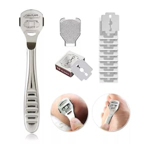 Removedor de calos e pele grossa para mãos e pés, produto de alta qualidade desenvolvido em 100% aço inox, acompanha kit com 10 laminas, elimine calosidades e pele grossa de forma segura, rápida, eficaz e indolor.