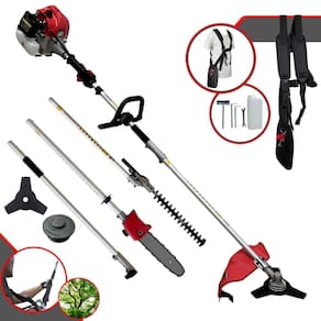 Possui tubo bipartido para facilitar o transporte. E para quem procura versatilidade, este modelo oferece a Função “4 em 1? em um único produto, pois acompanha 4 acessórios para você realizar diferentes tipos de manutenções. A roçadeira acompanha carretel de nylon, lâmina de 3 pontas, motopoda com sabre 10” e o aparador de cerca viva de 400mm, para corte de galhos até 20mm de diâmetro.