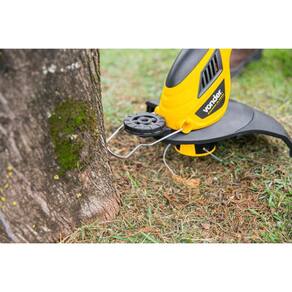 Leve, prático e funcional, possui punho auxiliar ajustável, corpo extensível, motor elétrico com dois rolamentos, trava que não deixa a extensão elétrica desconectar, carretel com saída dupla para o fio e sistema automático de avanço e corte do fio de nylon. Possui ainda, roda auxiliar de apoio para cortar as bordas da grama e cabeça com possibilidade de rotação, podendo ser posicionada na vertical ou horizontal, proporcionando maior facilidade nos acabamentos, além de limitador de distância que evita que o fio de nylon danifique o tronco ou o caule das plantas.