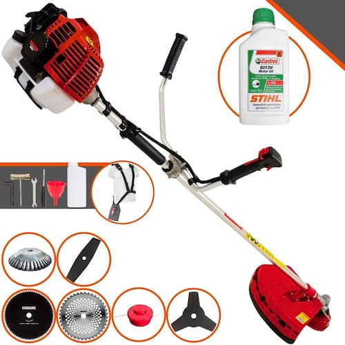 Roçadeira  Lateral Kawashima KW52-L À Gasolina 2T 52c 2,5HP Com Lâmina 3 Pontas + Faca 2 Pontas 330mm + Faca 40 Dentes 255mm+ Faca 80 Dentes 255mm +ÓLEO CASTROL STIHL 500ml