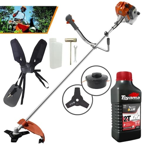Com guidão ergonômico lateral, permite um alcance amplo e maior mobilidade, capaz de aumentar a produtividade diária. Possui motor 2 tempos á gasolina, de 51,6 Cilindradas (52cc) 9.000 de rotação 2,0 HP de potência que proporcionam maior performance e economia na operação. Seu conjunto de acessórios inclui kit de ferramentas, cinto de suporte duplo almofadado, carretel de nylon e lâmina de corte 3 pontas.