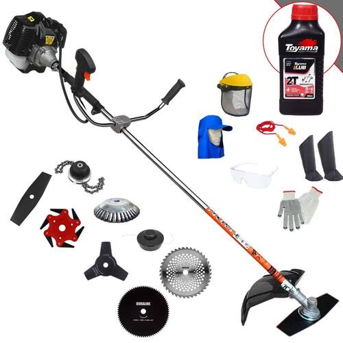 Roçadeira Lateral Terra GRH-520 Black À Gasolina 2 Tempos 52cc 2,5HP + Faca 3 Pontas 255mm 2,9mm + Faca 40 Pontas 255mm 2mm + Faca 80 Pontas 255mm 1,5mm + Faca 6 Pontas 250mm + Escova Rotativa 200mm 38 Cerdas + Trimmer + ÓLEO TOYAMA LUB FG50 500ml 2T + Kit EPI Completo