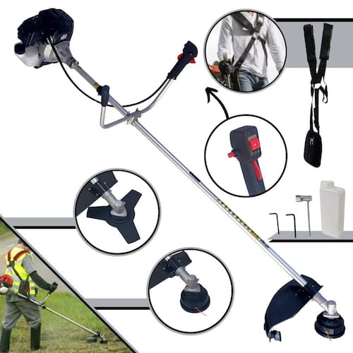 Com guidão ergonômico lateral, permite um alcance amplo e maior mobilidade, capaz de aumentar a produtividade diária. Possui motor 2 tempos á gasolina, de 43 Cilindradas, 10.000 de rotação 1,7HP de potência que proporcionam maior performance e economia na operação.Seu conjunto de acessórios inclui kit de ferramentas, cinto de suporte duplo almofadado, carretel de nylon e lâmina de corte 3 pontas.