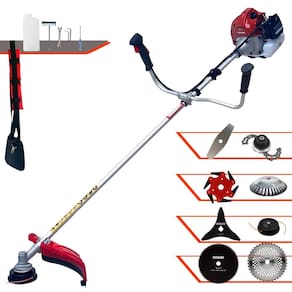 Com guidão ergonômico lateral, permite um alcance amplo e maior mobilidade, capaz de aumentar a produtividade diária. Possui motor 2 tempos á gasolina, de 43 Cilindradas; 1,7HP de potência que proporcionam maior performance e economia na operação. Seu conjunto de acessórios inclui kit de ferramentas, cinto de suporte almofadado, carretel de nylon e lâmina de corte 3 pontas.