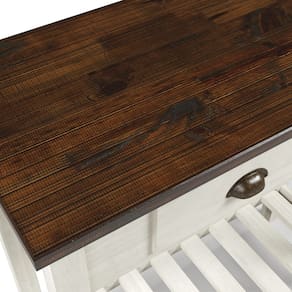 - Acabamento: Branco Envelhecido | Tampo: Walnut.