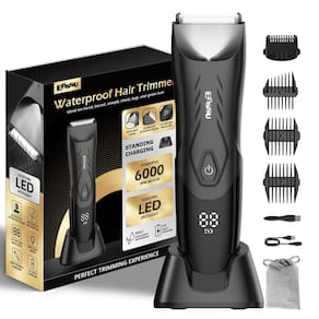 - ?Estação de carregamento e tela digital de bateria?Descanse o aparador de virilha para homens em seu elegante suporte de carregamento, você pode carregá-lo a qualquer momento após o uso. E com um visor digital claro para monitorar o status da bateria.