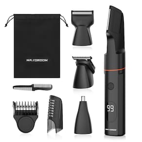bola elétrica de paisagismo paisagístico masculino virilha de corpo inteiro kit aparador de pelos pubianos masculino barbeador de pelos pubianos masculinos -?Kit multifuncional de tratamento corporal?O conjunto de aparador de pelos corporais masculino MAXGROOM inclui 4 cabeças de corte diferentes: cabeça de aparador de corpo em forma de V, cabeça de aparador de barba, cabeça de microbarbeador e cabeça de aparador de nariz, todas são removíveis e intercambiáveis para aparar da cabeça até os pés, atendendo perfeitamente a todas as suas necessidades diárias de higiene com facilidade. -?Suave para peles e áreas sensíveis?As lâminas do aparador são feitas de material hipoalergênico de aço inoxidável, ajudando a minimizar a irritação mesmo em peles sensíveis; além disso, as lâminas em forma de R com ponta redonda cortam suavemente os pelos nas áreas delicadas, como axilas, peito, virilha e púbis. -?Cabeça cortadora exclusiva em forma de V?O aparador de pelos corporais masculino MAXGROOM adota uma cabeça inovadora em forma de V, que pode ser cortada suavemente em áreas estreitas e de difícil acesso, como costas, axilas, virilha, púbis e nádegas. O dispositivo em forma de I com design ergonômico é muito confortável de segurar, proporcionando um controle total de sua rotina diária de corte. -?Comprimentos de corte ajustáveis?Este aparador de barba vem com um pente ajustável para aparar a barba, basta girar o botão no pente para alterar as configurações de comprimento de 1 mm para 9 mm, permitindo que você crie com precisão diferentes formas de barba. -?Impermeável para uso úmido e seco?Todo o corpo deste aparador de pelos corporais adota material impermeável, atingindo o nível IPX6. Você pode desfrutar livremente de cuidados úmidos e secos dentro ou fora do chuveiro; o aparador corporal também é lavável e pode ser enxaguado em água corrente para facilitar a limpeza. -?Bateria de longa duração com display LED?Nosso aparador de pelos pubianos recarregável é alimentado por uma bateria de íon de lítio de grande capacidade, fornecendo 90 minutos de uso sem fio após 1,5 horas de carga total. O display LED inteligente mostra a energia restante da bateria em tempo real e lembra você de carregar a tempo.