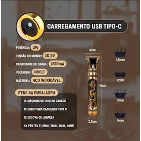 Com seus 4 pentes ajustáveis (1,5mm, 2mm, 3mm, 4mm), a máquina do dragão oferece uma infinidade de possibilidades para atender às suas exigências de comprimento. Deixe sua criatividade voar alto e crie cortes e estilos únicos, do discreto ao ousado, tudo com um único aparelho.