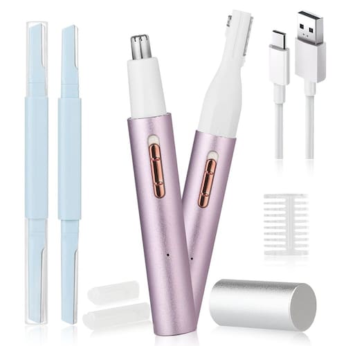 - Yunmiss Kit de remoção de pelos faciais multifuncional recentemente atualizado de 2025, completo com um aparador de sobrancelha de lâmina dupla face, um acessório de pente, uma cabeça de substituição para aparar pelos do nariz